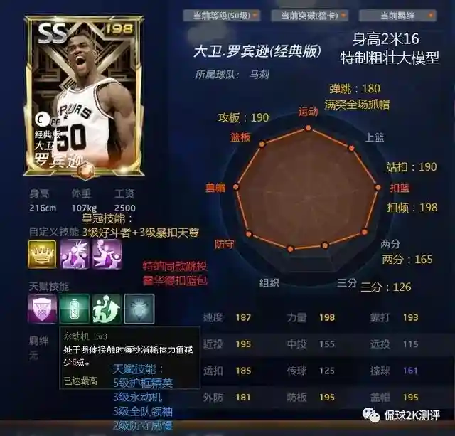 基里连科是个很全面的球员,我个人觉得装备火烫手感和神射手可能好点,其它内线技能不怎么合适。我给你看下技能,你参考一下吧杜兰特是属于射手型的球员,所以装备神射手,和火烫手感比较好,下面给你所有技能属性作为参考好吧。。