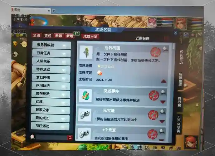 3、植物选择: 木本植物:成长周期较长,但成熟后可以结出果实,玩家可以获得经验、银币以及有几率获得额外奖励。适合追求游戏内收益的玩家。 草本植物:成长迅速,很快就能成熟并开出美丽的花朵,主要起装饰美观的作用。适合喜欢美化庭院的玩家。 花费考虑: 根据个人预算选择适合的植物种子。
