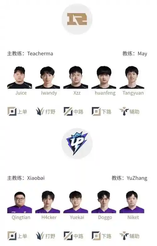 上单:TheShy,打野:Karsa,中单:Xiaohu,AD:light,辅助:Crisp。UP新赛季阵容名单。上单:Hery/ZS,打野:Ning,中单:Qing,下路:Doggo,辅助:Baolan。TT新赛季阵容名单。上单:Hoya,打野:Beichuan,中单:ucal,AD:Huanfeng,辅助:xinliu/yaoyao。TES新赛季阵容名单。