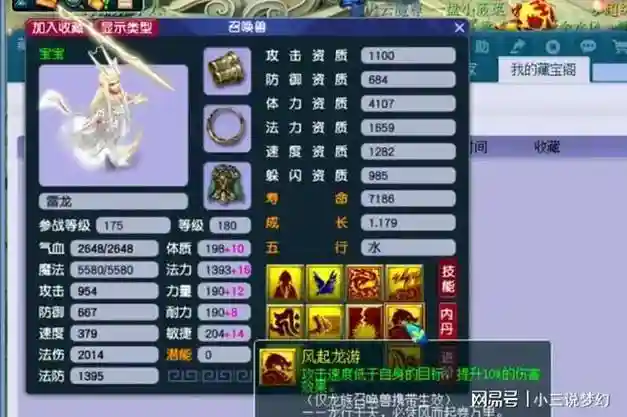 3、就是这个千灵的宝宝如果用大法秒一个灵力是500的怪,那么秒出去之后单体的伤害大约在680左右。法波、法修暂不计算。如果你单有高魔心的技能,等于在680点伤害的基础上提高20%,实际的伤害值在800左右;如果单有须弥那么你的法伤结果增加900*0.4=360点,实际伤害在1040点左右。